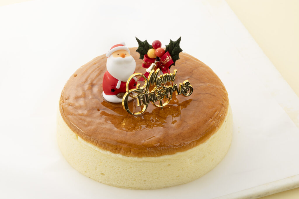 チーズケーキ(クリスマス期間限定) ふんわりとしたしゅわしゅわの口どけにこだわったスフレタイプのチーズケーキです。 3780円(税込)[18㎝] 取扱店舗:全店舗 販売期間:季節 [ご注意]※掲載の商品は予告なく販売終了する場合があります。ご了承ください。 ※店舗によって取扱商品が異なる場合があります。詳しくはお尋ねください。