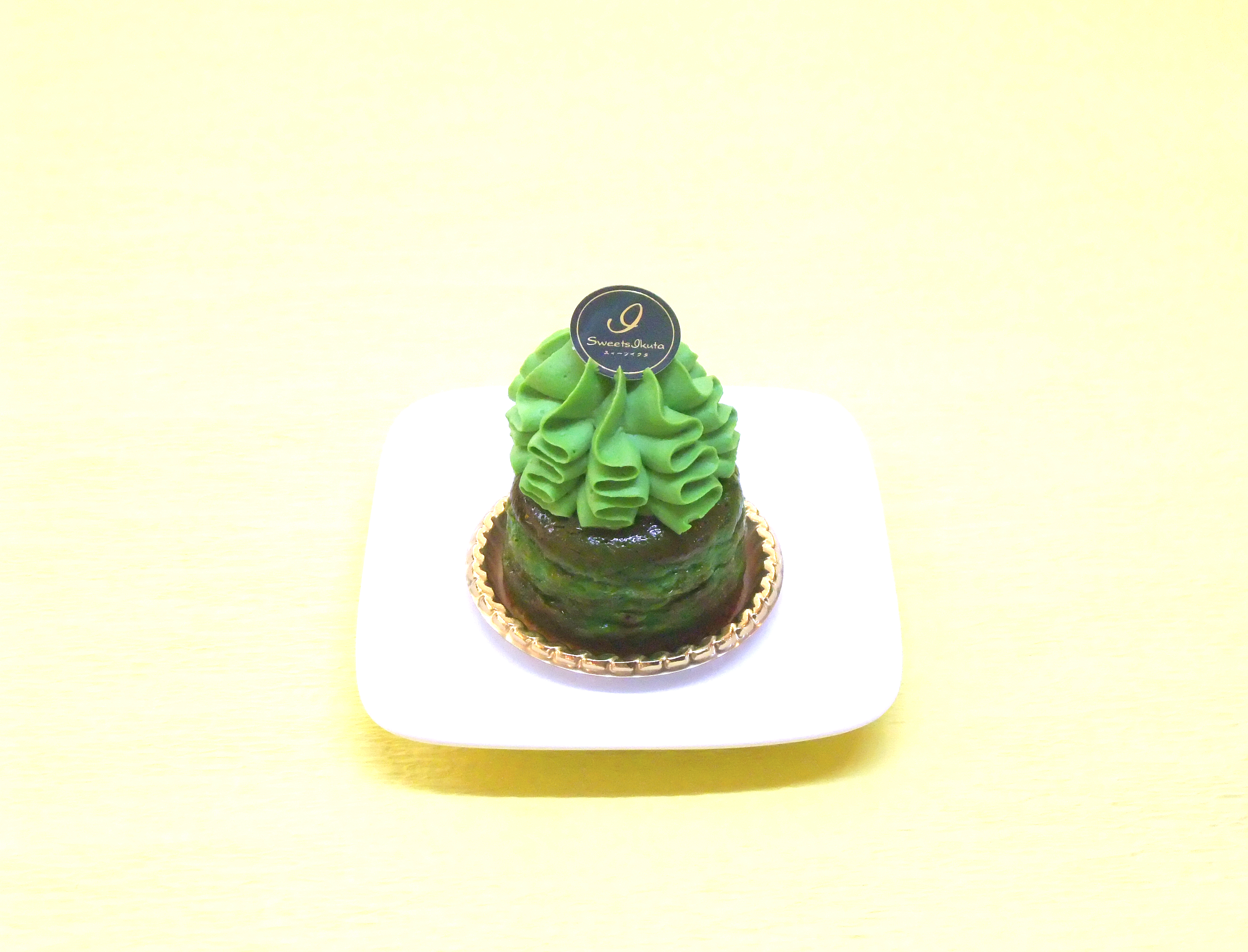 ピスタチオ風味のバスクチーズケーキの上に、ピスタチオ味の生クリームを絞ってます。
